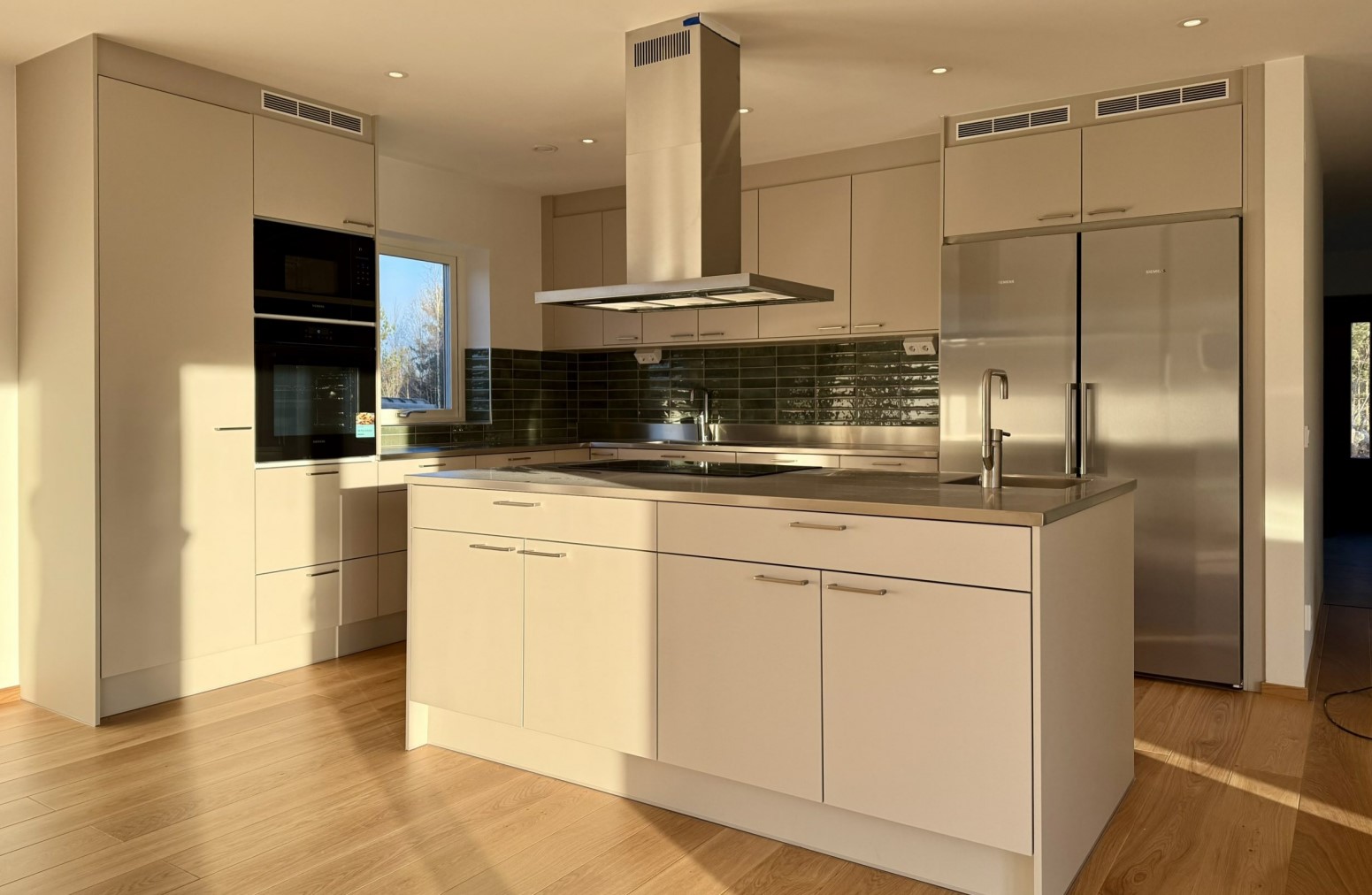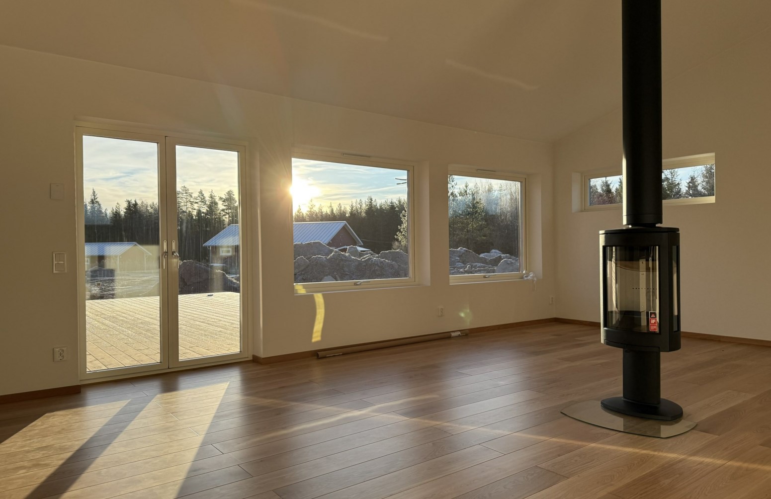 Solhem 159 är hemmet som ger dig utrymme att leva fullt ut. Här möts generösa ytor och en genomtänkt planlösning som bjuder in till både gemenskap och avskildhet. Det är ett hus där livet får ta plats, oavsett om det handlar om livliga middagar, barnens lek eller stilla stunder för dig själv. De stora sociala ytorna binds samman på ett naturligt sätt och skapar en varm, inbjudande atmosfär. Ljuset flödar genom huset och förstärker känslan av rymd och harmoni. Samtidigt finns det gott om plats för att skapa privata zoner, en perfekt balans mellan det sociala och det personliga.